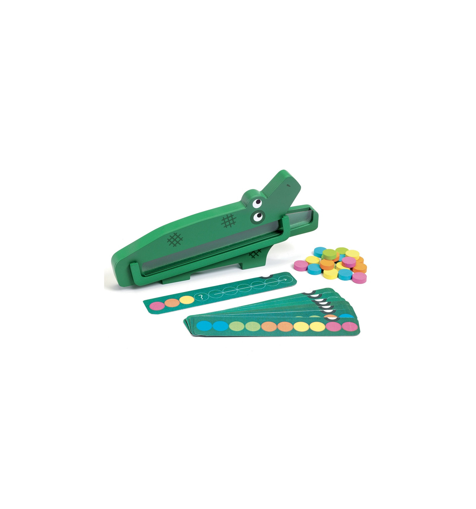 Jak grać - dziecko wybiera kartę z zadaniem, zakrywa brzuch krokodyla, a potem wrzuca krążki tak, by odtworzyć kolejność. W zaawansowanej opcji wykorzystuje tylko połowę sekwencji, a wcześniej musi zapamiętać resztę. Zabawny krokodyl, wykonany z wysokej jakości drewna staje się interaktywną częścią gry – angażuje uwagę i wyobraźnię, a samokorygujące karty pozwalają sprawdzić poprawność umieszczenia krążków, co wspiera samodzielność i rozwój logicznego myślenia.
