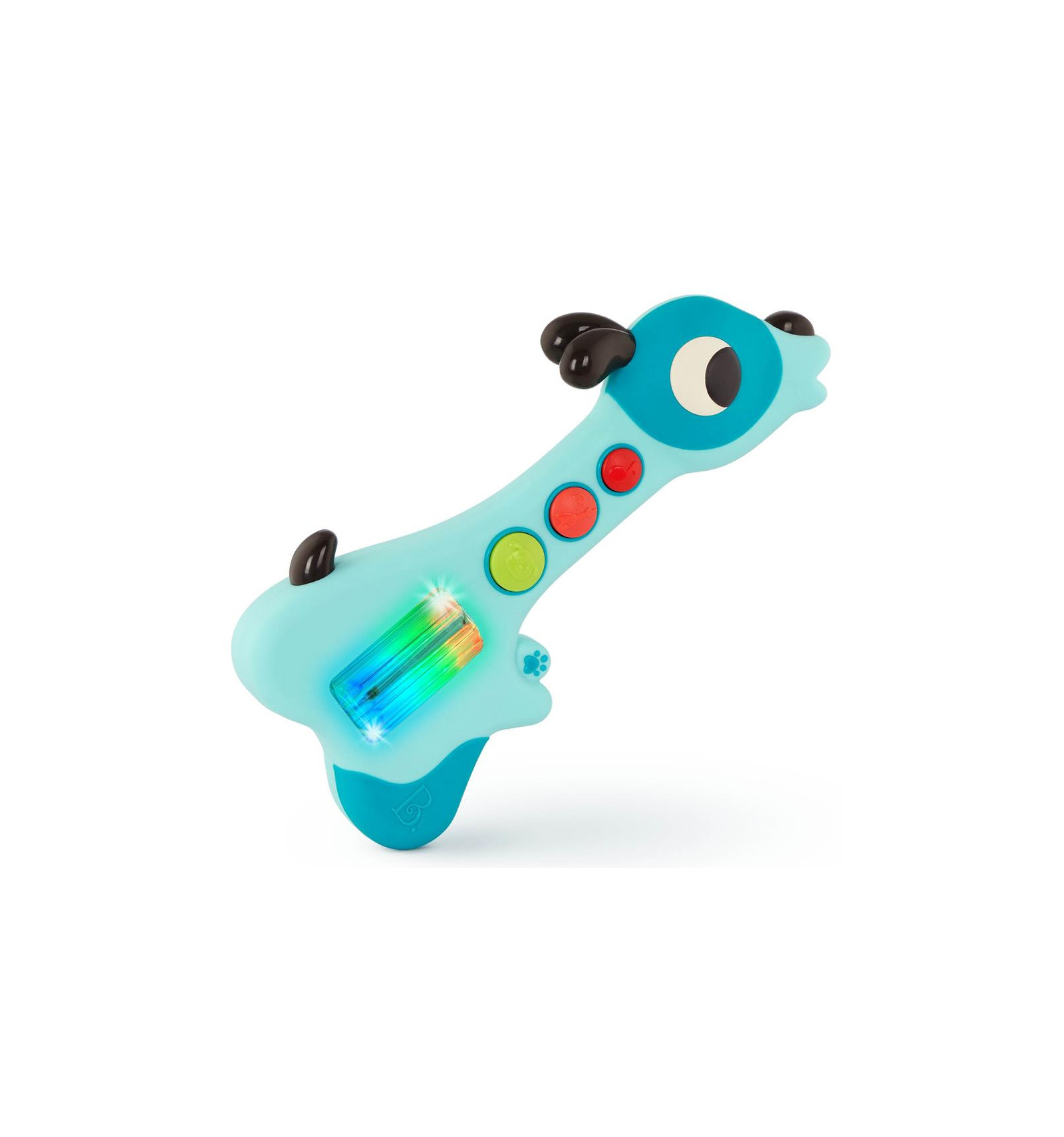 Gitara w kształcie pieska Mini Woofer to zabawka idealna dla małego kompozytora. Pierwsza gitara z dużymi, masywnymi klawiszami i kręcącym się cylindrem z podświetlniem zainteresuje każdego malucha, a dodatkowe opcje podnoszą atrakcyjność zabawki. Zabawka muzyczna w kształcie niebieskiego pieska wywołuje ciekawość, a jego rozmiar ułatwia zabranie go ze sobą.