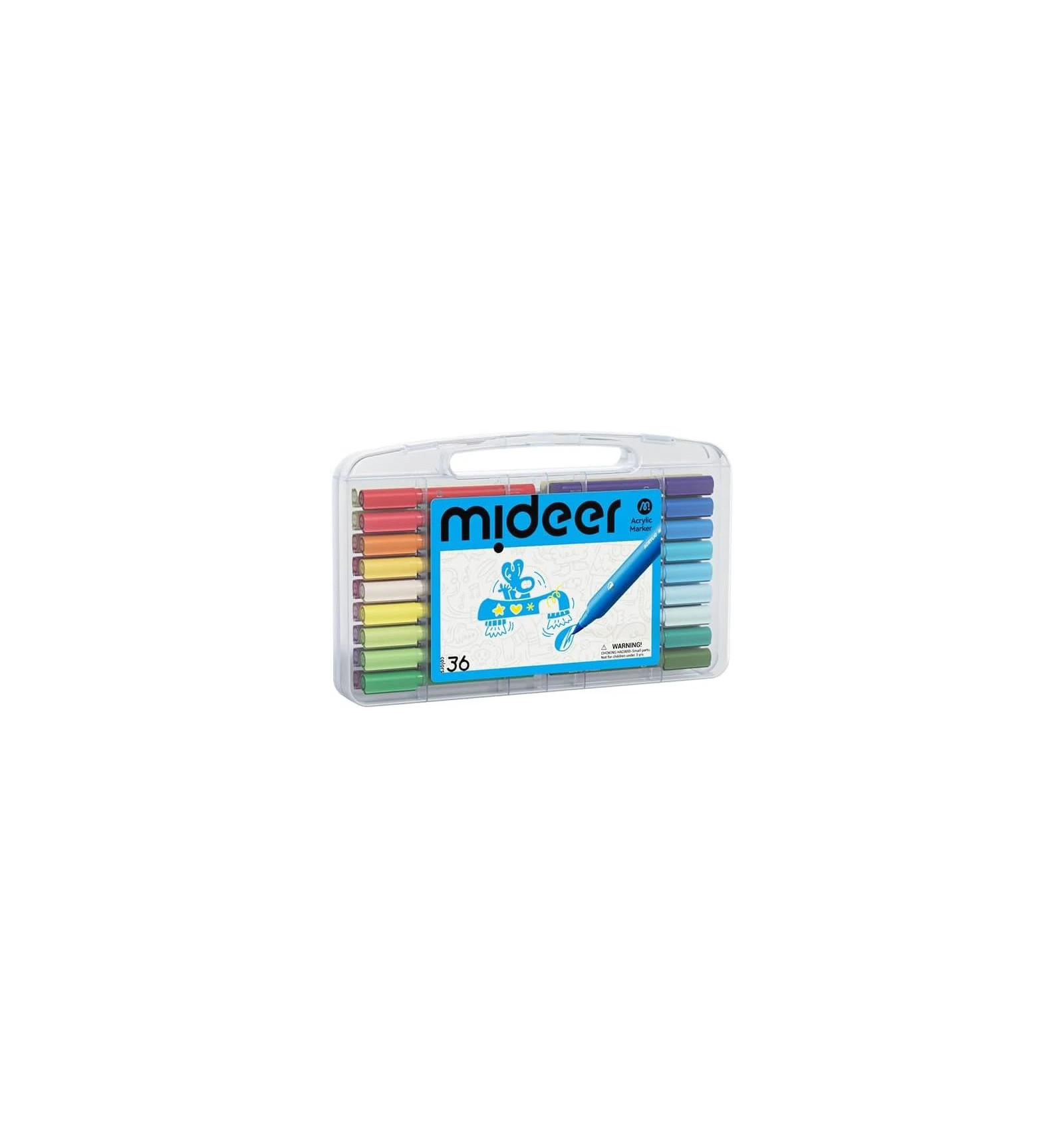 Markery akrylowe z pędzelkową końcówką 36 kolorów w walizce Mideer 3+