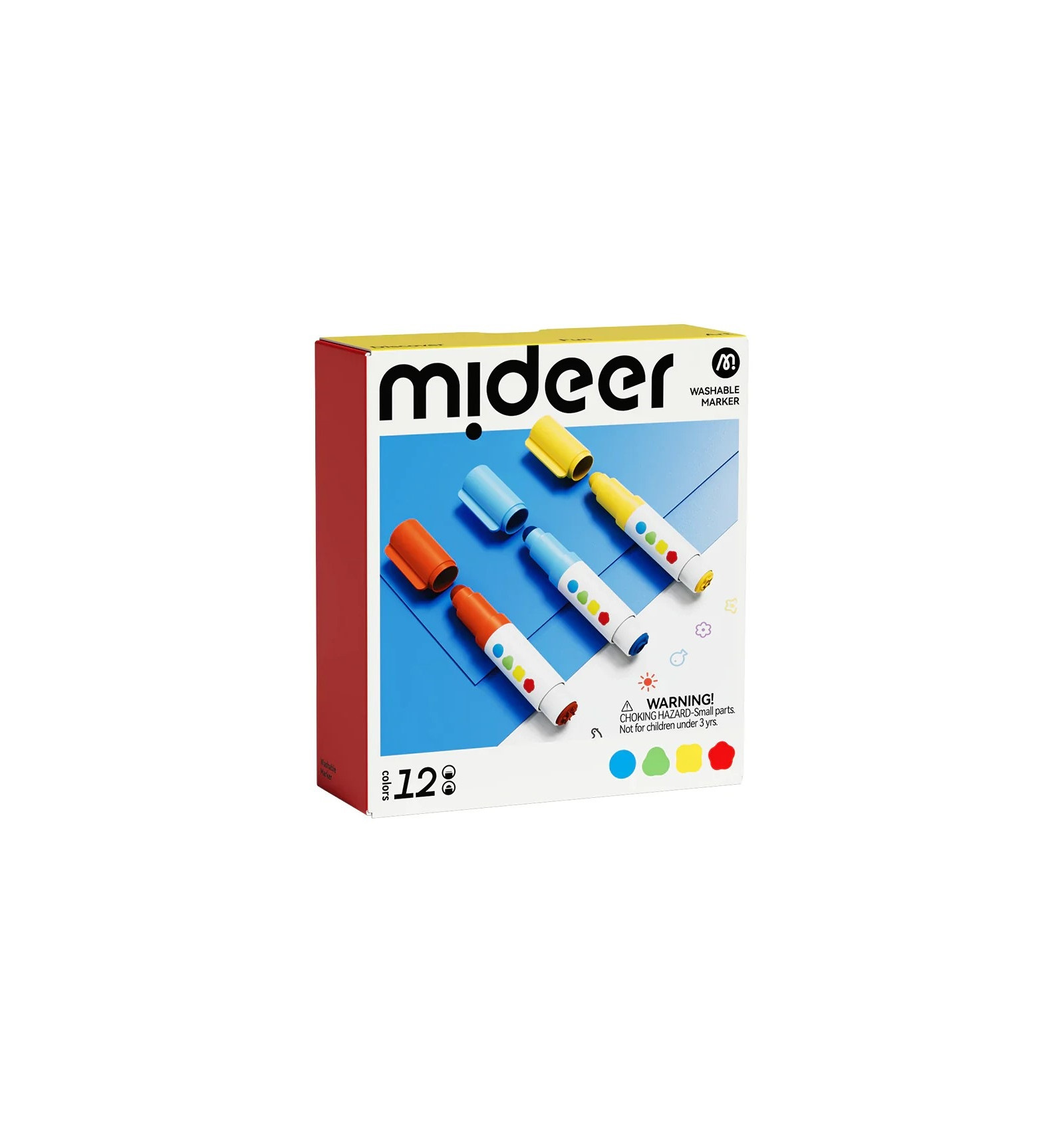 Markery zmywalne 12 kolorów z okrągłą końcówką i stempelkami Mideer 3+