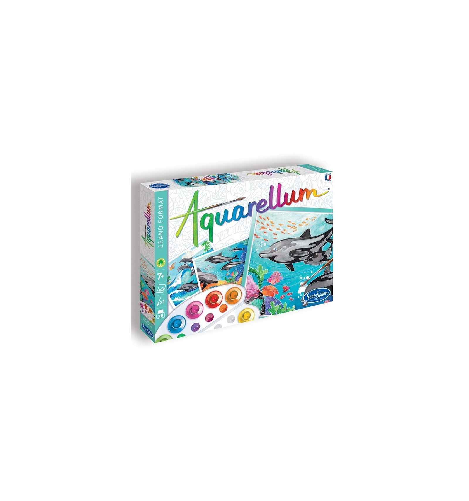 Marka Aquarellum to łatwe malowanie akwarelą stworzone przez Sentosphère. To kreatywna zabawa z unikalną techniką opracowaną przez Sentosphère, która uniemożliwia wychodzenie poza kontury. Ilustracje są nadrukowane i osadzone na grubym, welinowym papierze wysokiej jakości. Przy każdym pociągnięciu pędzla pojawia się piękny, kolorowy obraz, ponieważ farba przylega tylko do wyznaczonych obszarów – dzięki specjalnie wytłoczonym konturom. Młodzi artyści nie mogą więc wyjść poza linie, a wzór ukazuje się niczym za dotknięciem czarodziejskiej różdżki.