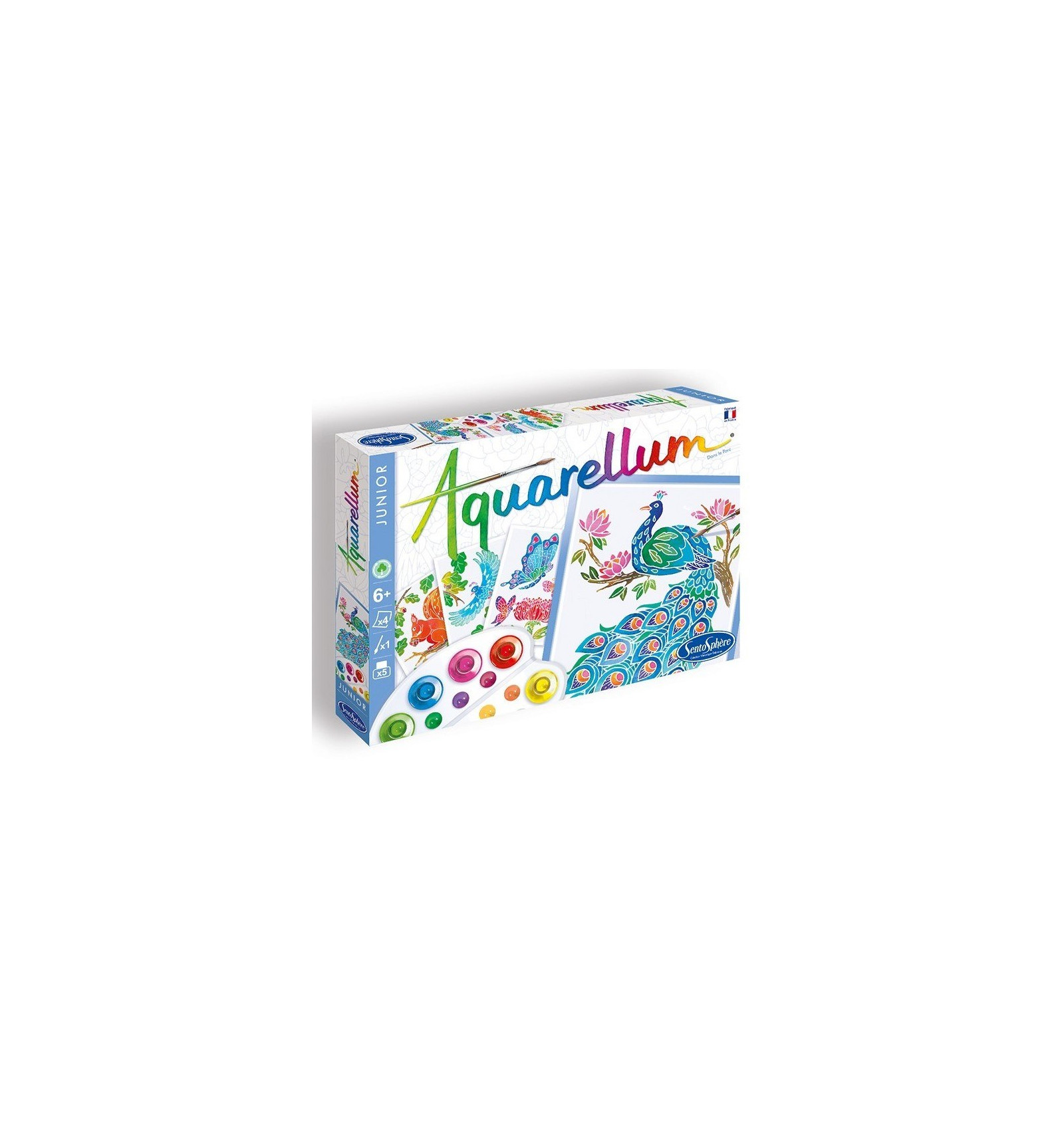 Marka Aquarellum to łatwe malowanie akwarelą stworzone przez Sentosphère. To kreatywna zabawa z unikalną techniką opracowaną przez Sentosphère, która uniemożliwia wychodzenie poza kontury. Ilustracje są nadrukowane i osadzone na grubym, welinowym papierze wysokiej jakości. Przy każdym pociągnięciu pędzla pojawia się piękny, kolorowy obraz, ponieważ farba przylega tylko do wyznaczonych obszarów – dzięki specjalnie wytłoczonym konturom. Młodzi artyści nie mogą więc wyjść poza linie, a wzór ukazuje się niczym za dotknięciem czarodziejskiej różdżki.