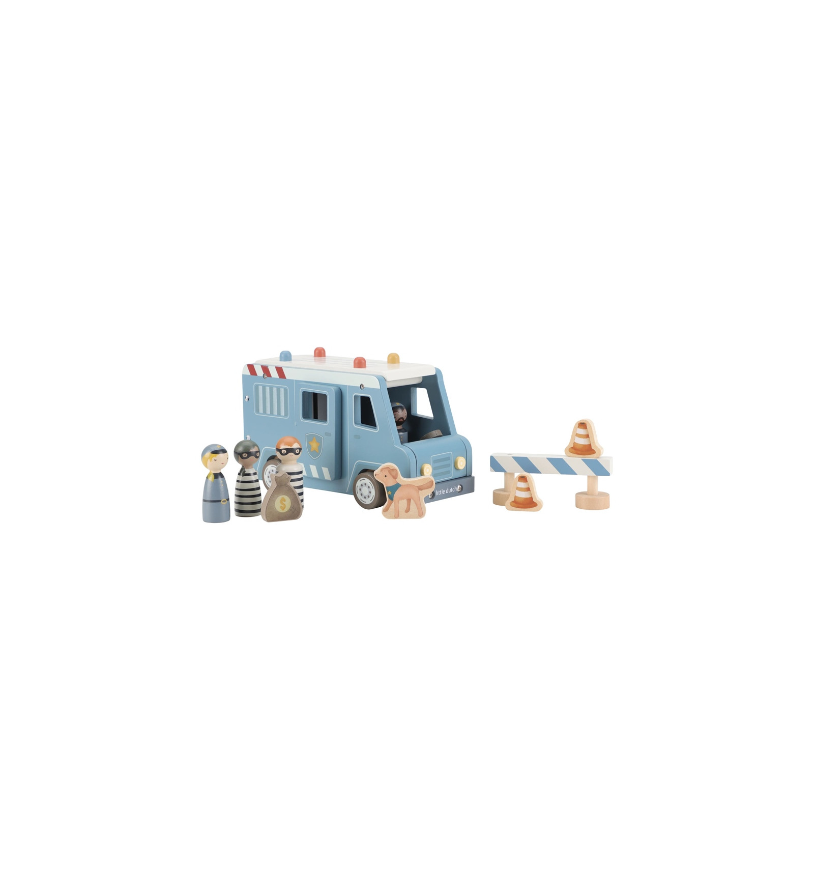 Samochód Policyjny z Figurkami drewniany pojazd Little Dutch 3+