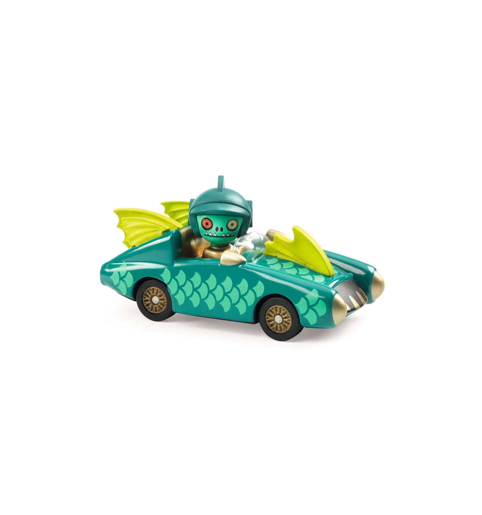 Autko Djeco Crazy Motors Mister Wings – wyścigówka z fantastycznym kierowcą! Metalowe autko z gumowymi oponami, zawieszeniem i efektowną karoserią w łuskach ryby.