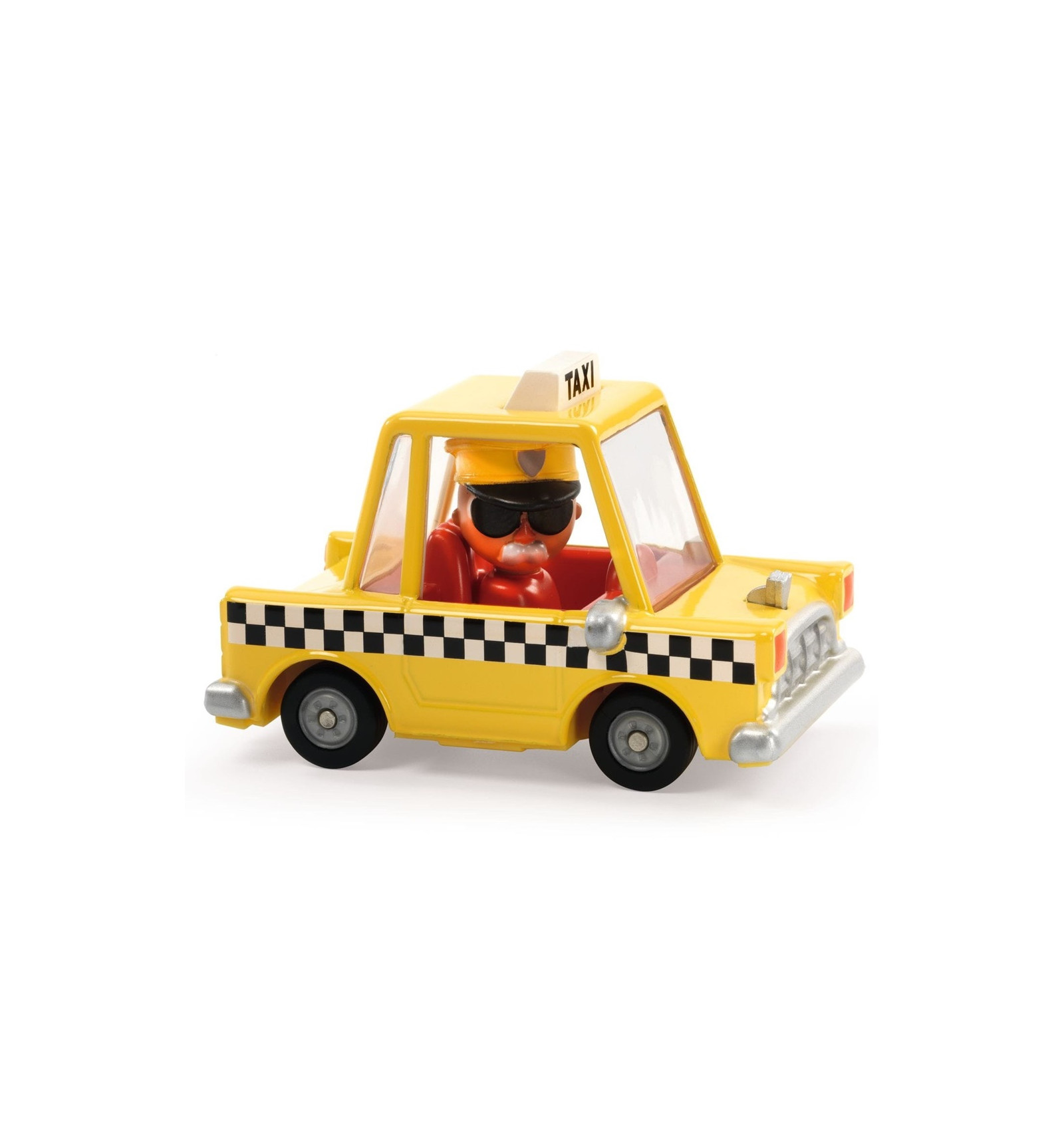 Metalowe autko z serii Crazy Motors – Taxi Joe od Djeco. Piękne wykonanie, gumowe opony i bohater za kierownicą. Zbierz całą kolekcję i stwórz własne miasto pełne przygód!
