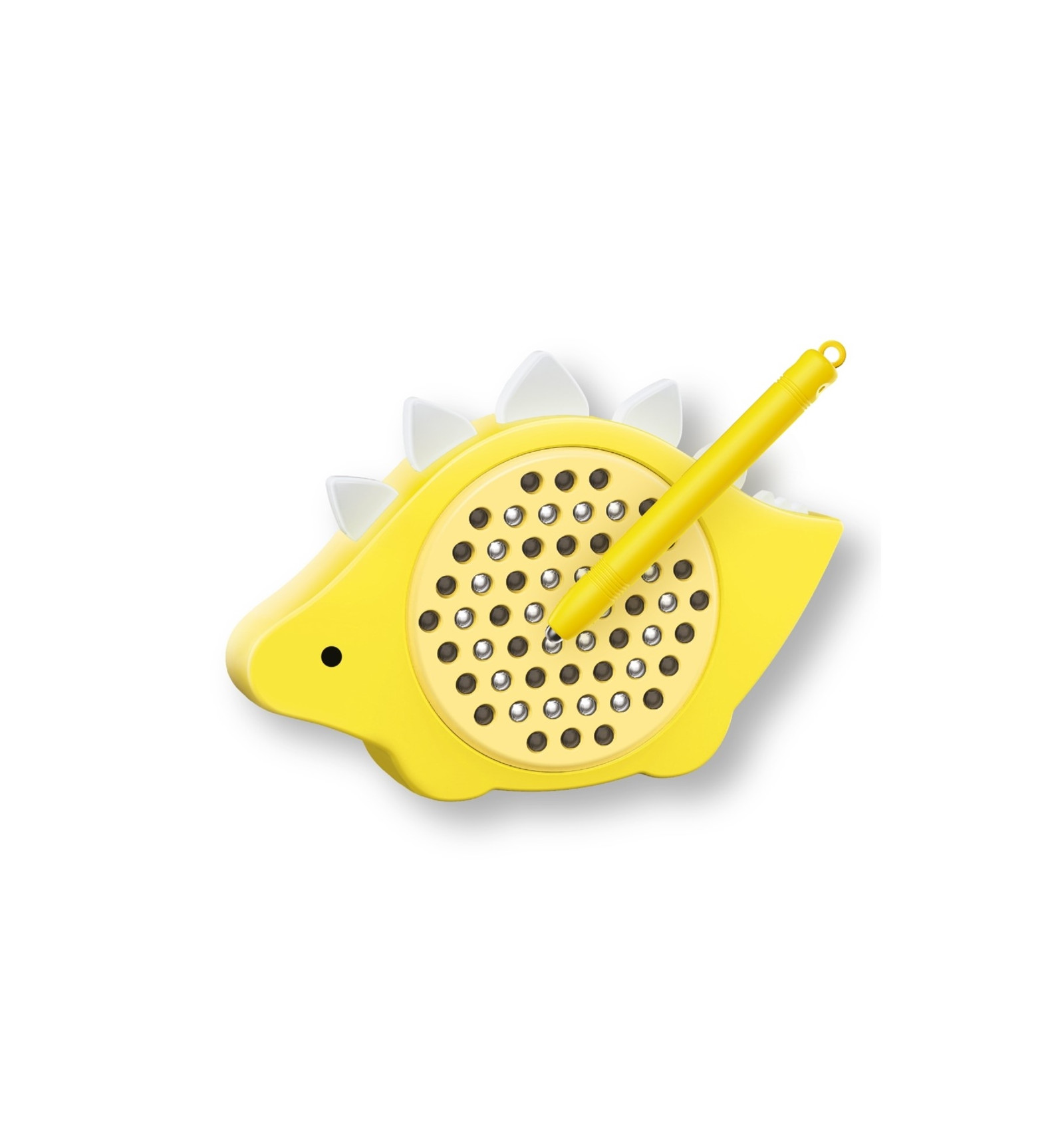 Mała tablica magnetyczna Apli Kids – Dinozaur Stegozaur zamienia zwykłe rysowanie w fascynującą przygodę pełną kreatywności i odkrywania. Wystarczy przesunąć magnetyczny rysik po powierzchni, aby ukryte metalowe kulki uniosły się i stworzyły niezwykłe kształty, linie i obrazki. To jak rysowanie bez kredek, bez farb i bez bałaganu – idealne rozwiązanie dla małych odkrywców, którzy chcą tworzyć własne dinozaury, wzory i fantastyczne kompozycje gdziekolwiek się znajdują.