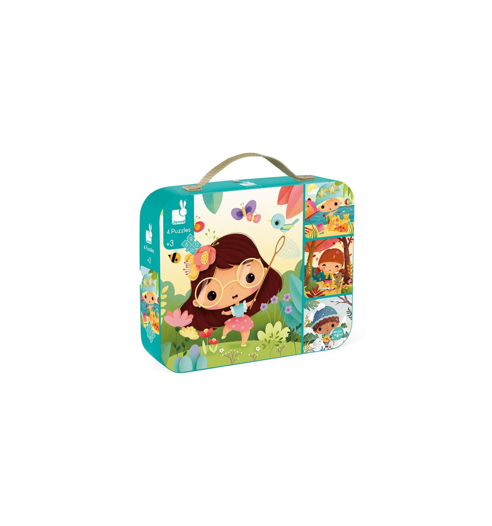 Pory Roku puzzle w walizce 4 układanki Janod 3+