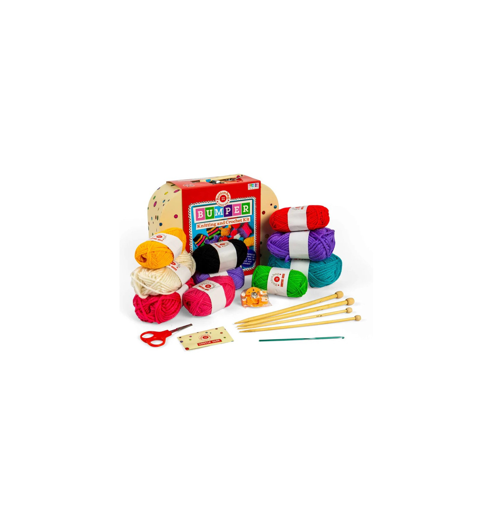 Zestaw do nauki robienia na drutach i szydełkowania Bumper Knitting Kit ButtonBag