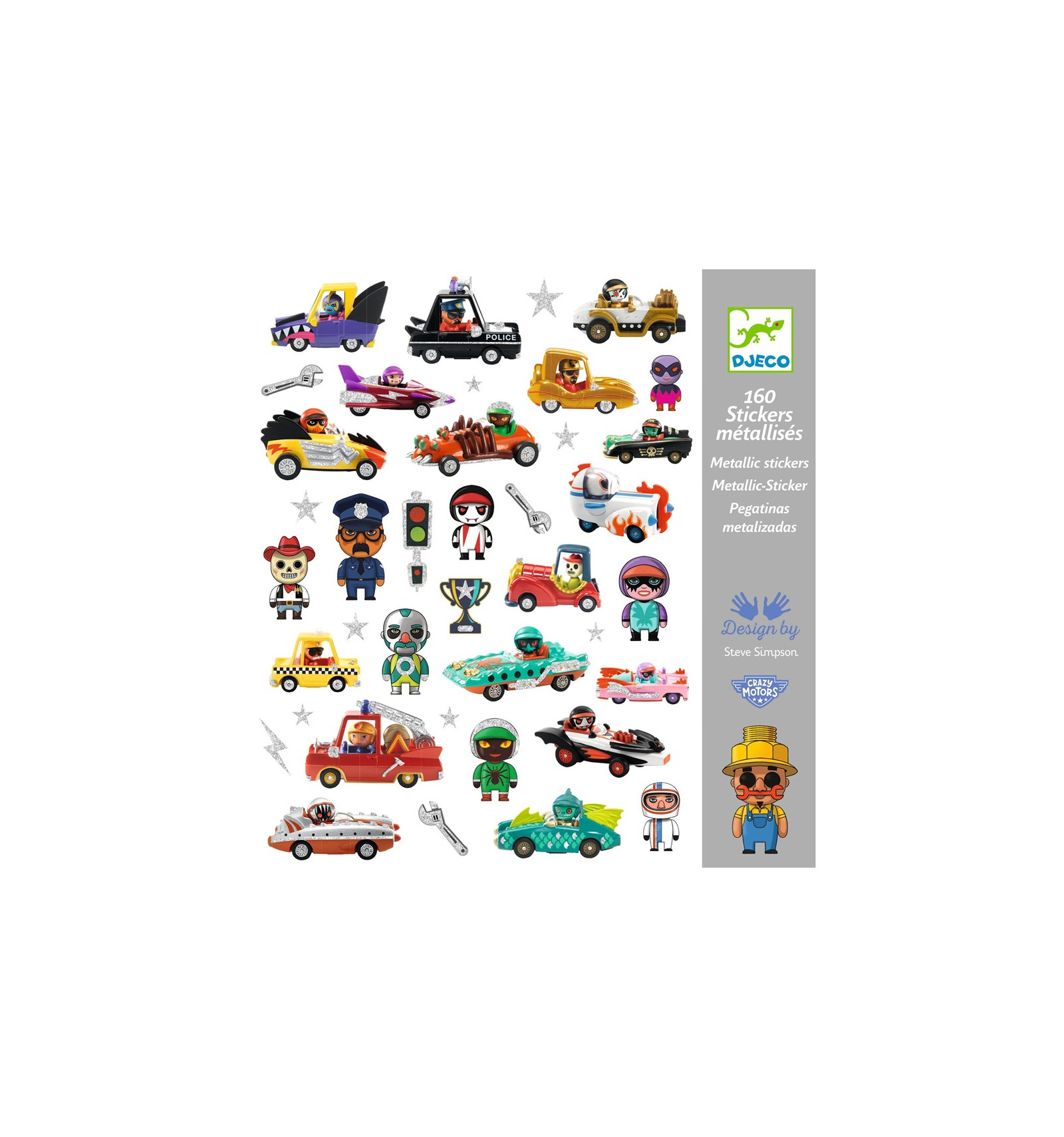 Crazy Motors naklejki metaliczne z autkami 160 szt. Djeco 4+