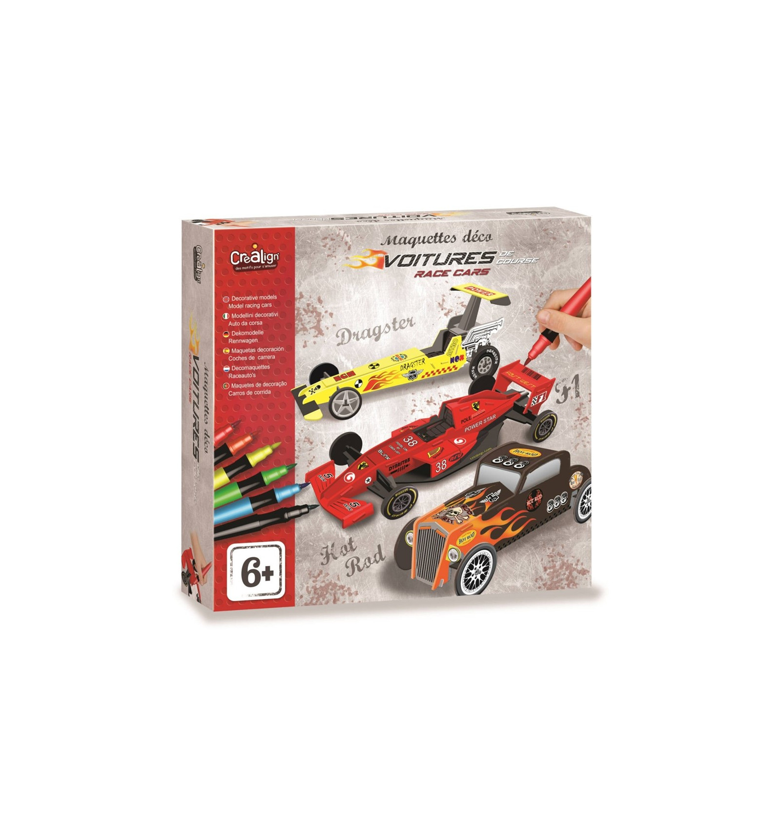 samochodów wyścigowych do składania i dekorowania dla dzieci. Produkt zawiera 3